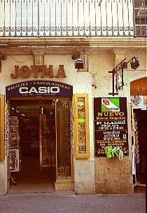 ![]() 大聖堂のすぐ近くのみやげ店。 スペインまで来てCASIOの時計を土産に? フィルムはフジ! ちなみにFUJIをスペイン風に読むと、 「フフィ」、になってしまうようです。 |