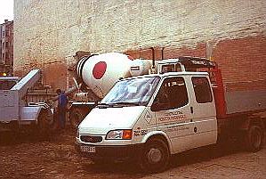 ![]() 工事現場。日の丸?みたいな模様のコンクリートミキサー車 | |