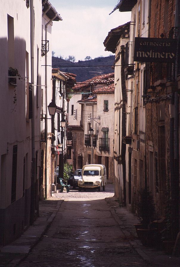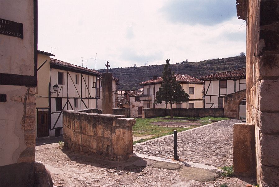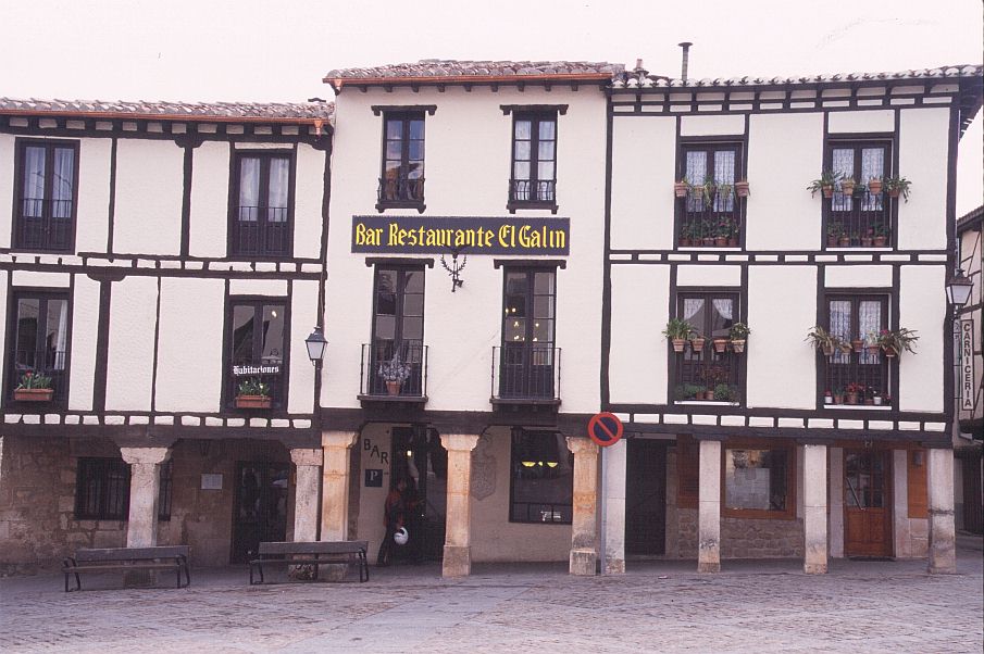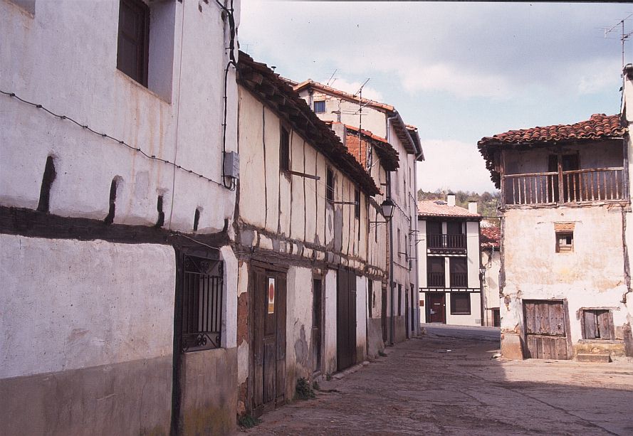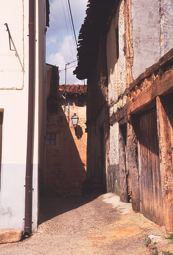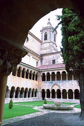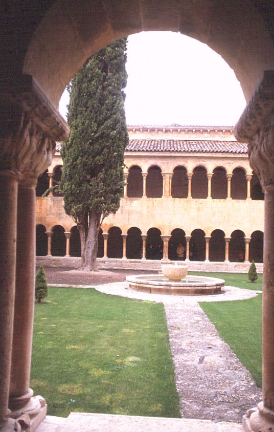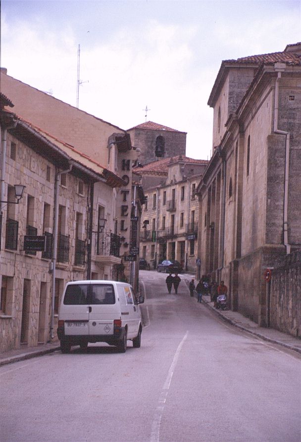 | コバルービアス(Covarrubias) 標高 896m 人口 657人 アルランサ川河畔に位置、ピラミッド状のドニャ・ラウーカ塔がそびえる市壁の一部が残り、通りの上にアーチをかけたルネッサンス様式の館がある。この通りを行くと絵のような街区へ出る。家は木骨組で壁面を漆喰、れんがでつめてあり、石の円柱で支えられている。 サントドミンゴデシロス(Sant domingo de Silos) 標高 1003m 人口 339人 カスティーリャ平原が果てる荒涼とした丘陵地帯にある、修道院と共に生きてきた村。 サントドミンゴデシロス修道院・・・スペインで最も美しいロマネスク形式の回廊がある。修道院の教会では一日6回のミサが行われ、そのうち朝9時と夕方7時のミサでは修道士たちが歌うグレゴリオ聖歌を聞くことができる。 |