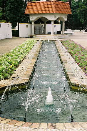 志摩スペイン村 アルハンブラ宮殿の庭園の噴水のイメージなのかなぁ。 しかし、私がアルハンブラ宮殿に行った時は、工事中でなんと水が出ていなかった・・・・ 工事中の、本物のアルハンブラ宮殿・ヘネラリフェの噴水 スペインのような風景