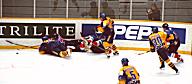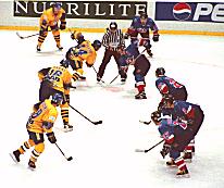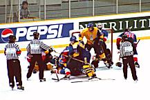 | 乱闘です。こんな事もよくあるようで。 でも、いくら氷上の格闘技とは言っても、 本当に格闘しちゃしけません? |