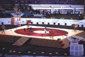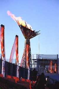 - 会場内から見た聖火。