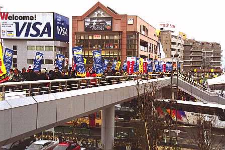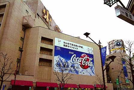 百貨店の壁には、でかでかとオリンピックスポンサーの広告。