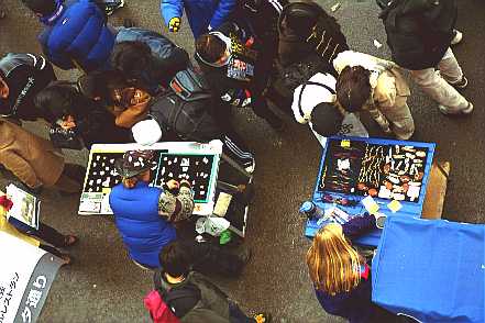 オリンピック恒例のピンズ(ピンバッジ)を売る人もたくさん出ています。
