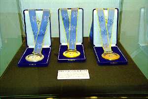 その百貨店内に展示してあった、オリンピックのメダル。