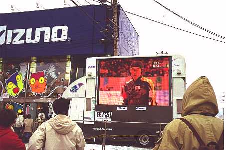 街に出ていても、競技の様子はご覧のようにすぐわかまりす。