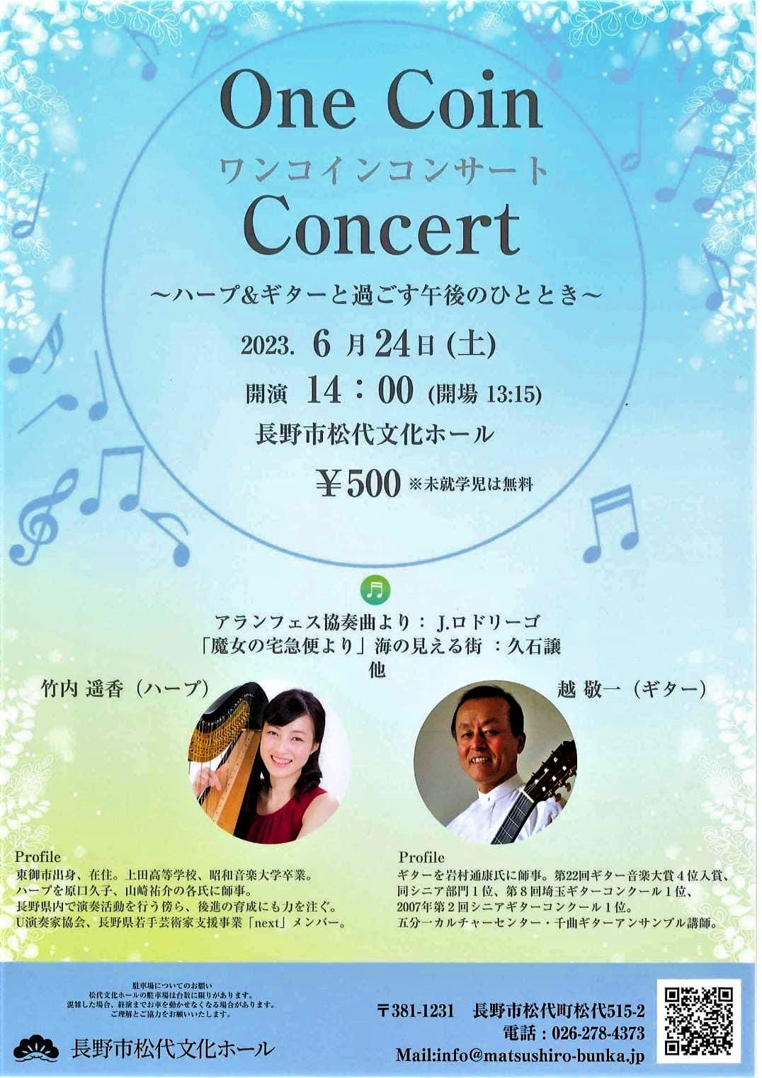 2023 第42回発表会 2023年11月5 日(日) 13:30 開演 竹風堂大門ホール (入場無料) 賛助出演 ルス・アルテ 長野ギターアンサンブル 第14回越ギター教室発表会 2023年10月14日(土) 開演PM13:00 会場 千曲市戸倉創造館大ホール 入場無料 ゲスト出演 竹内遥香(ハープ) カルチャーセンター 3講座合同コンサート 2023年9月24日(日) 14:00開演 (13:40開場) 美鈴楽器 コンサートホール(3F) (長野市北石堂町=中央通り=長野駅から徒歩10分) ※会場の駐車場はありません ①マンドリン 折井 清純 ②クラシックギター 岩村 通康 ③ヴォーカル 小林 励 伴奏 岩村通康・折井清純 ④クラシックギター・マンドリン デュオ 岩村通康 折井清純 終演 15:30(予定) 前売り券 2,000円(税込み) (7/18~販売開始) 前売りのみ、当日券なし ※定員になり次第、販売終了になります。ご了承ください。 プレイガイド 長野県カルチャーセンター事務局(Tel.026-224-2233) 長野駅ビルMIDORI 5階 ![]() (チラシ) アグアドの会サマースクール 2023年7月22日(土) ~23日(日) 飯綱高原 ペンション・ドルチェ 講師 鈴木豊 しなのき夕涼みコンサート2023 2023年7月15日(土) 18:30開演 (18:00開場) 長野市勤労者女性会館しなのき2階ホール 入場無料 電話でお申し込み下さい 026-237-8300 <出演> ♪柳町中学校合唱部 ♪中野清史(フルート)中野もと子(ピアノ) ♪岩村通康(クラシックギター) ![]() (チラシ) One Coin Concert ワンコインコンサート ~ハープ&ギターと過ごす午後のひととき~ 2023. 6月24日(土) 開演 14:00 (開場 13:15) 松代文化ホール ¥500 ※未就学児は無料 アランフェス協奏曲より:J.ロドリーゴ 「魔女の宅急便より」海の見える町:久石譲 他 竹内遥香(ハープ) 越敬一(ギター) ![]() (チラシ) UENO MEMORIAL MUSEUM OF ART NIGHT MUSEUM SPECIAL DUO CONCERT 越敬一(ギター) 竹内遥香(ハープ) 2023.6.4(sun) Open 17:00/Start 18:00 参加費 1,000円 定員 40名 梅野記念絵画館・ふれあい館 ※要予約 梅野記念絵画館までお電話でお申し込みください。 ![]() (チラシ) ギター大好きみんな集まれ ギターコンペティション 北陸信州地区大会 2023年1月22日(日) 長野市松代文化ホール